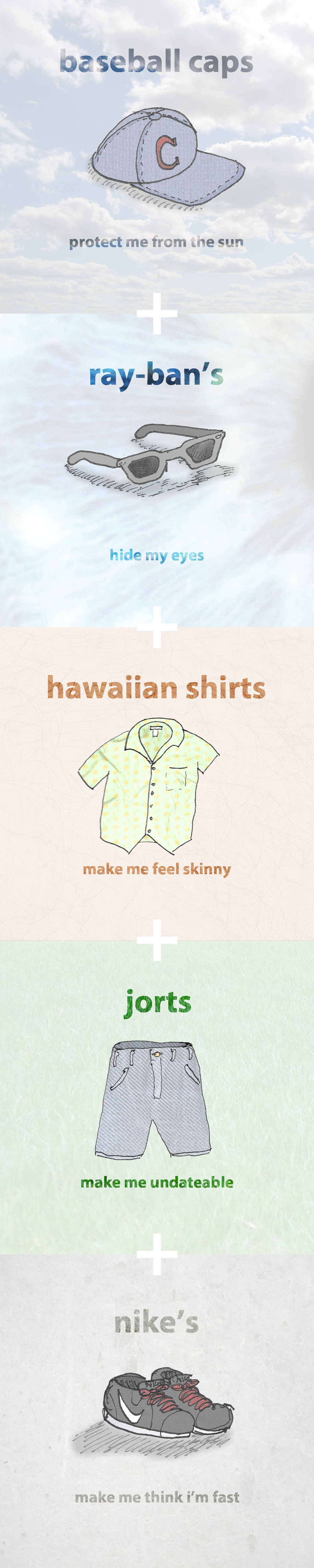 If you haven’t gathered it by now, this is my feeble attempt to rationalize my poor taste in fashion. Hawaiian shirts and jorts are just a couple of my guilty pleasures when it comes to fashion.