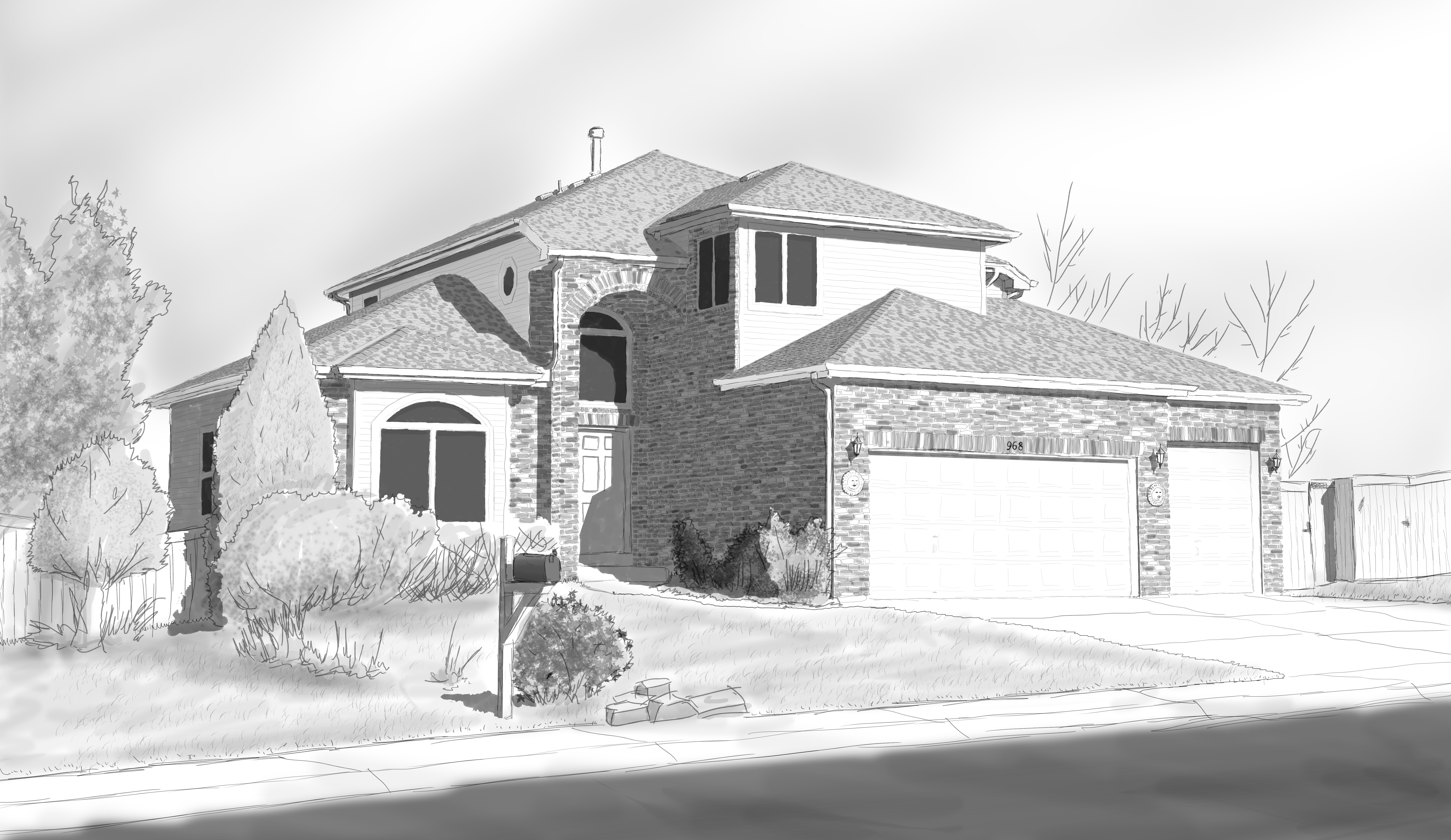 An emergency trip home has kept me from posting anything of interest as I have no access to my favorite computer programs. But, the trip is ending soon and has proven fruitful in terms of things to blog about. I’ll be sure to post pictures and such soon, but until then, please enjoy this doodle of my childhood home: