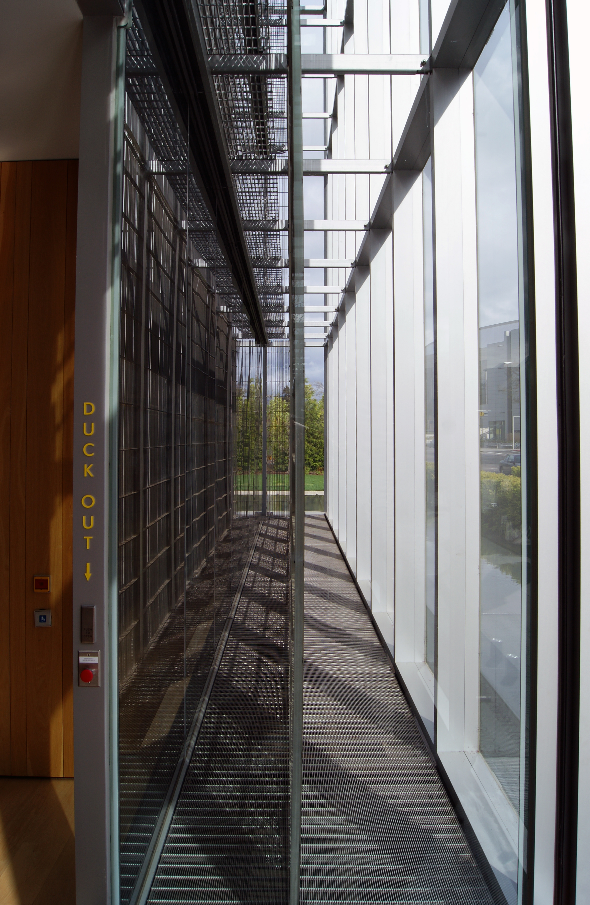 The building consists of a double shell exterior (though it seems it should be called a triple shell exterior…) that is meant to contribute to the sustainability of the project. Something along the lines of a passive heating/cooling system or a passive ventilation system. Either way, I’ve only ever heard it doesn’t function very well.