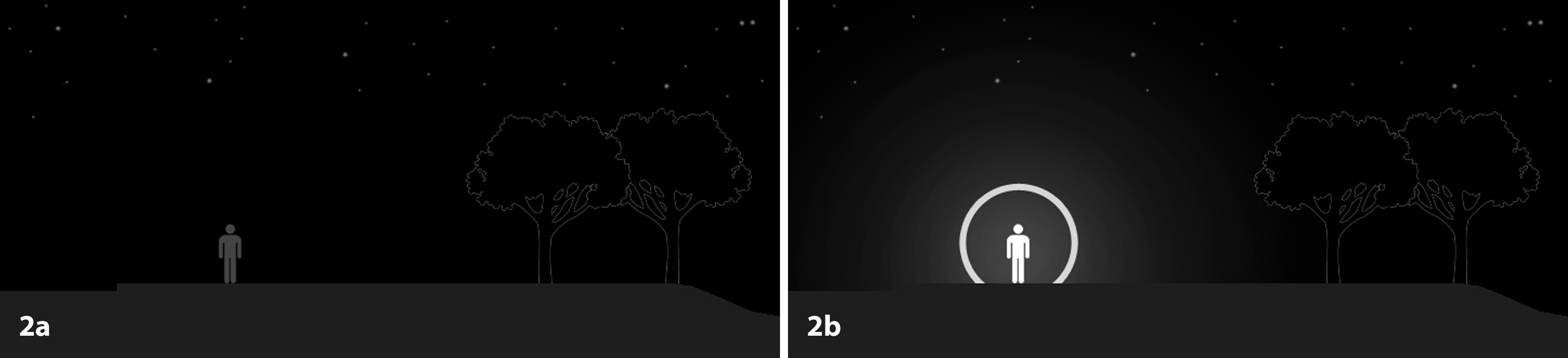 2b: To combat the frightful night, the rings were designed to illuminate the path and the nearby surroundings. This little tunnel of light created a sense of safety.
