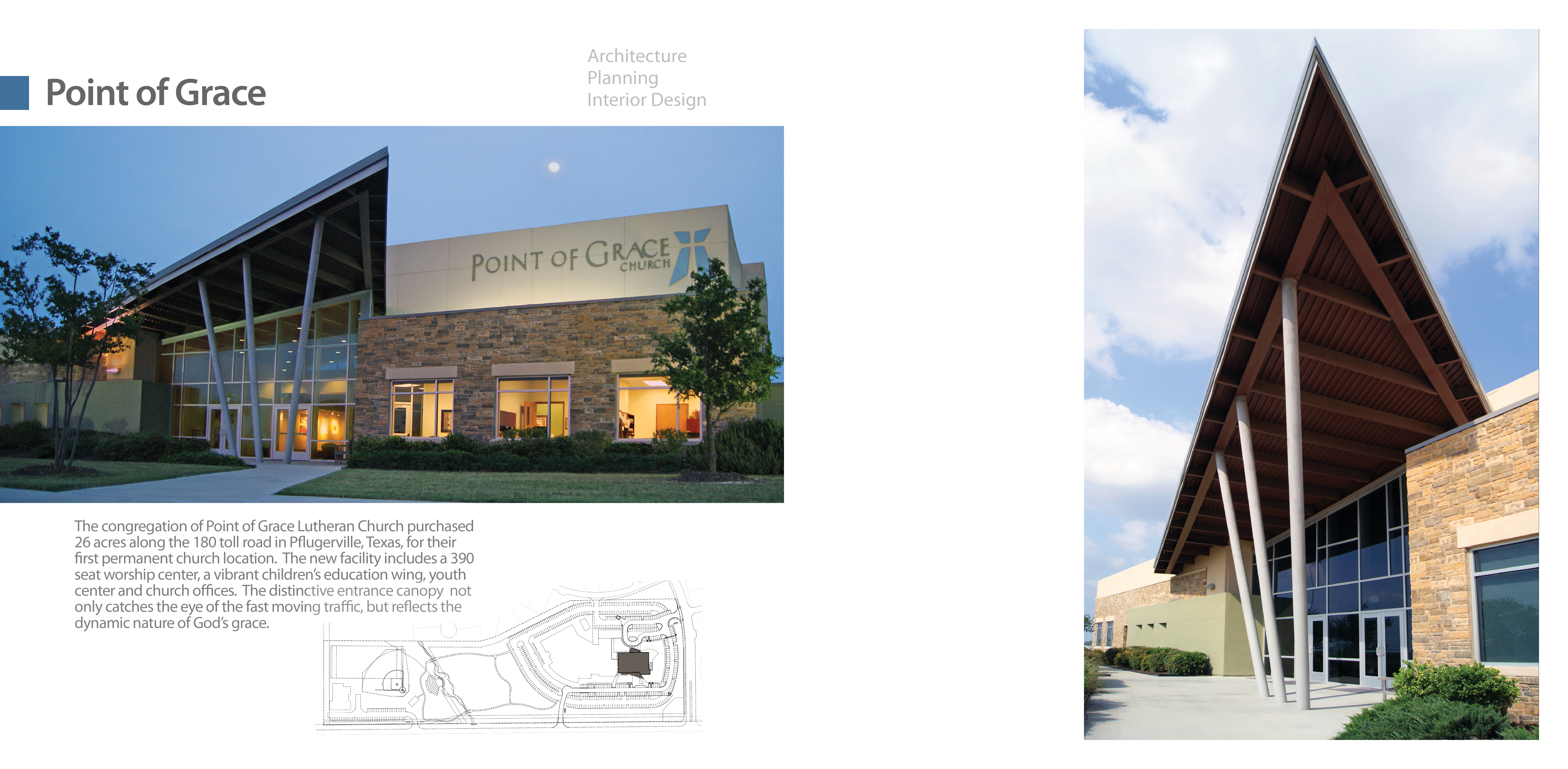 This first spread is the table of contents, highlighting the different project types the firm specializes in as well as the “about” section at the end. Each section then opened with a title page that depicted one of the Founder/CEO’s original sketches depicting that specific project type. Unlike the majority of architects currently practicing, he still continues to make beautiful hand drawings of every project he designs before moving to the computer. So we attempted to highlight this as best we could.