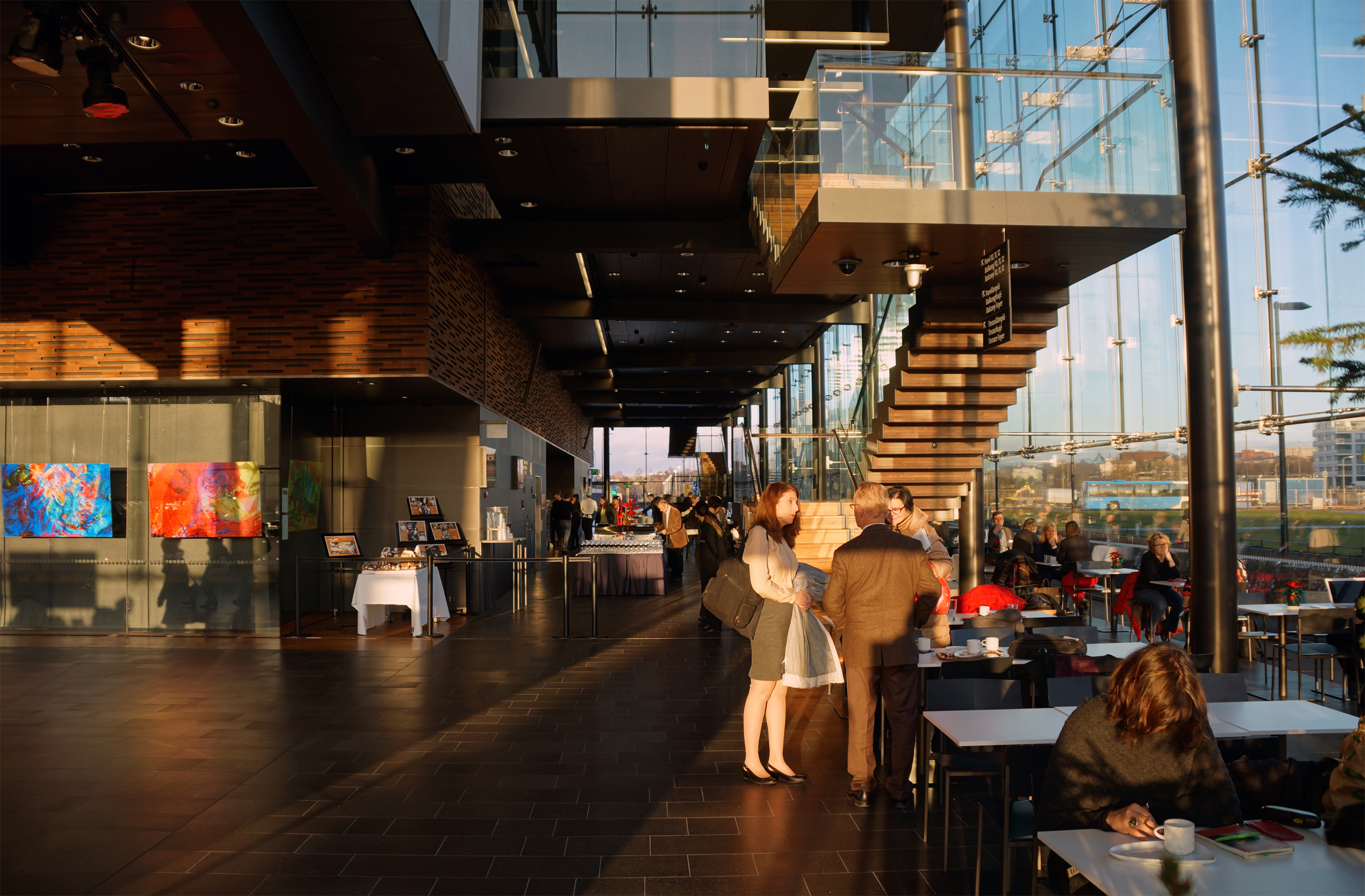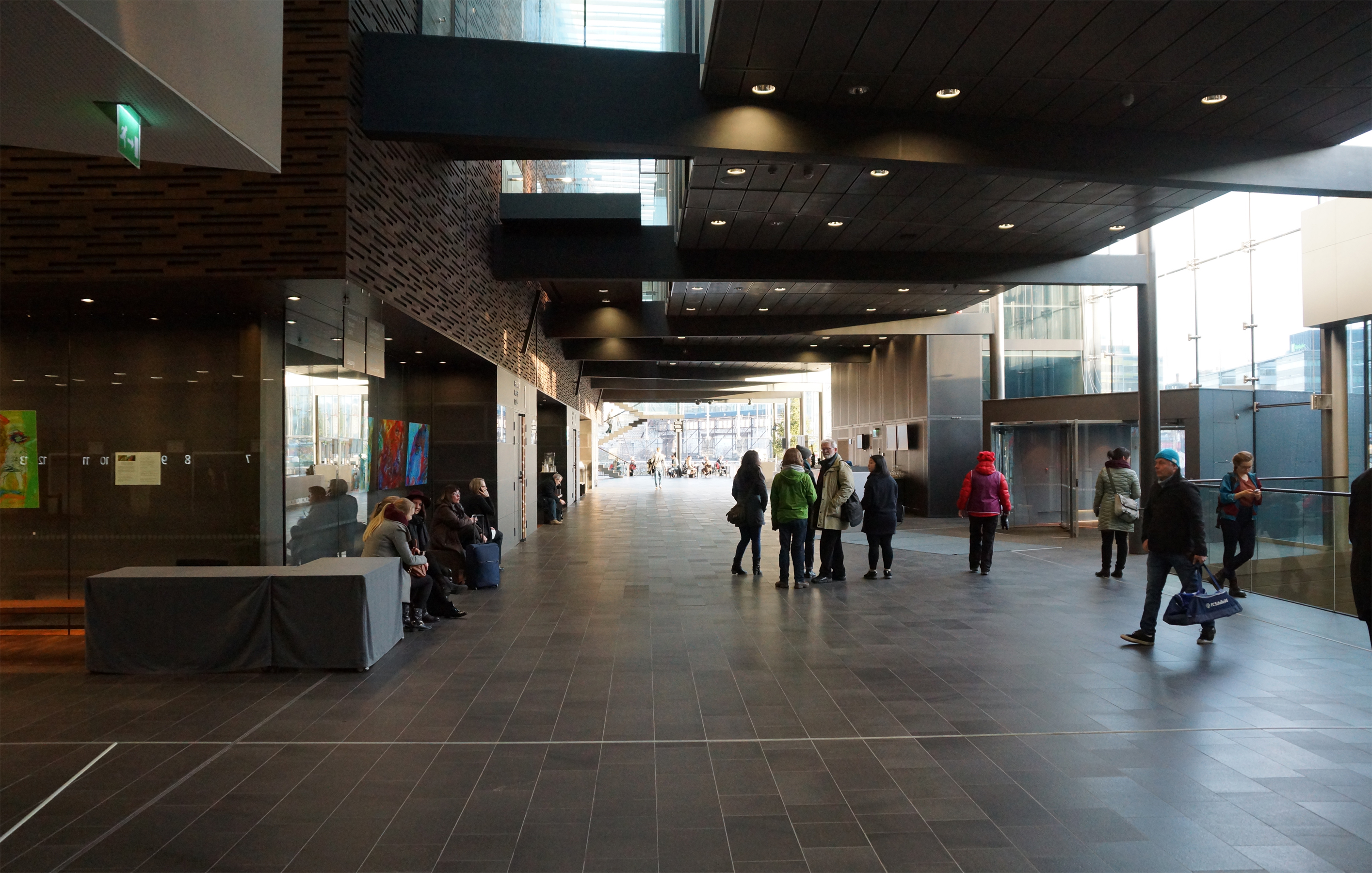 And in said halls are supporting program, like a small coffee stand and tables to eat a snack at before a performance.